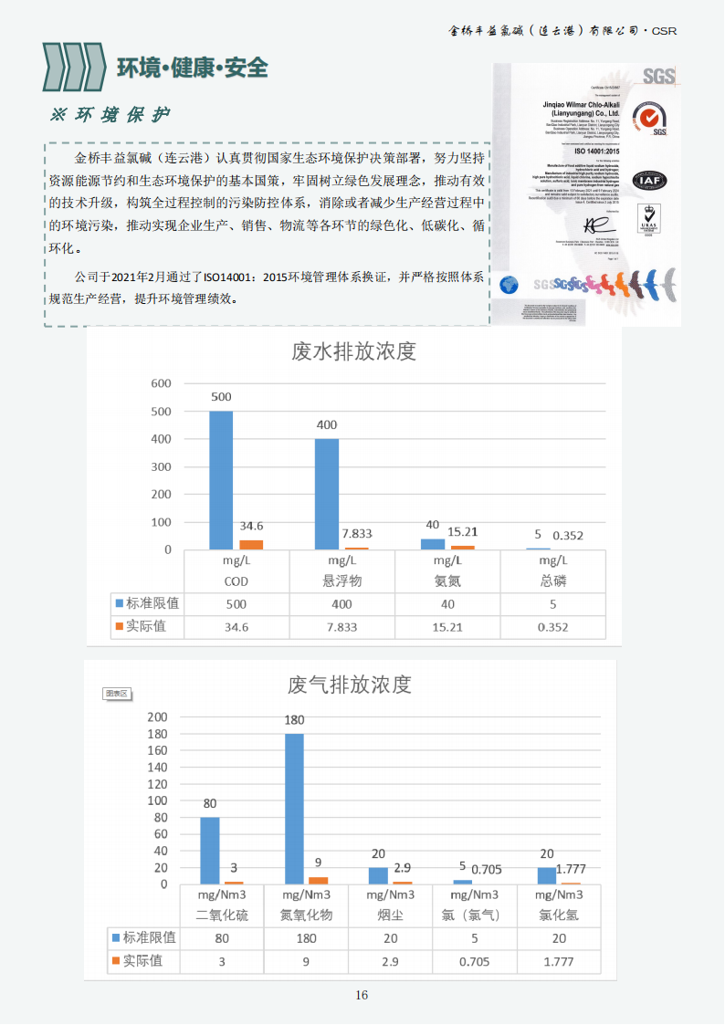 金橋豐益氯堿(連云港)有限公司2023年可持續發展報告公示
