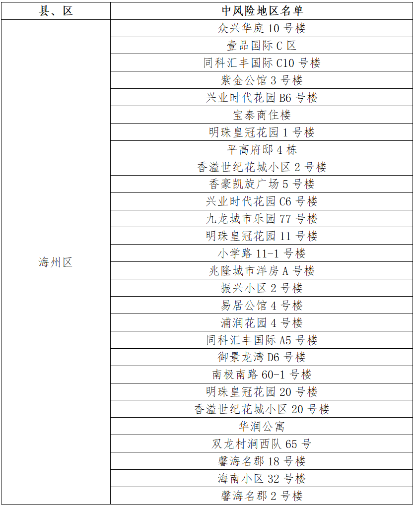連云港市中風險地區(28個)