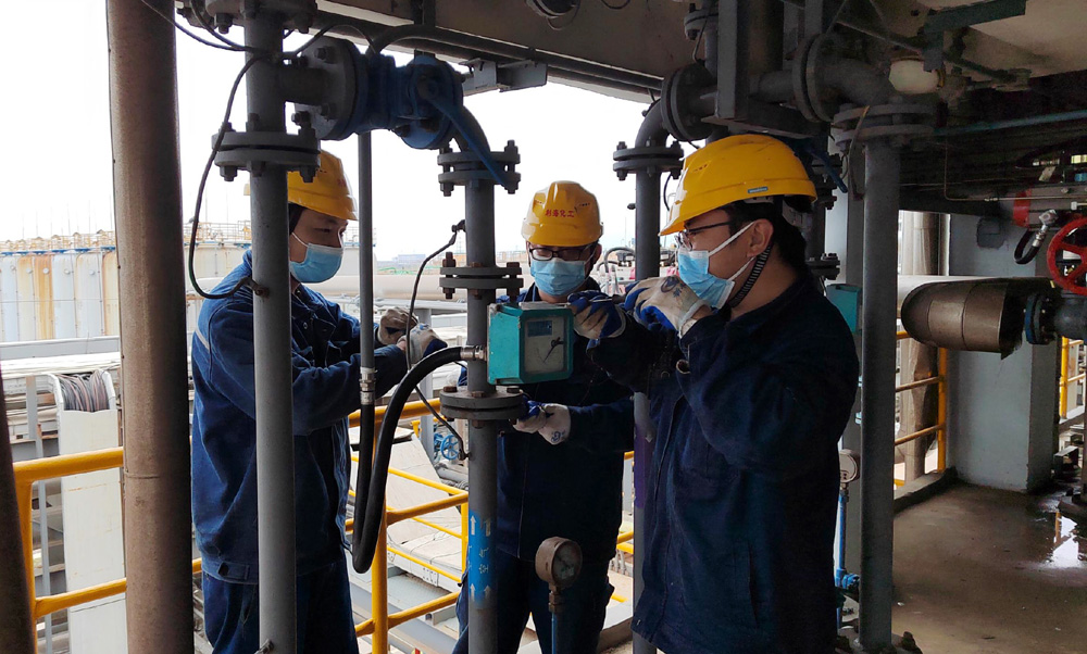 進(jìn)入秋冬之際,突如其來的疫情打亂了公司正常的生產(chǎn)經(jīng)營秩序,為統(tǒng)籌防疫工作并保障廠區(qū)正常生產(chǎn)運(yùn)行,公司實(shí)施閉環(huán)管理,140余名員工留崗,保障裝置正常運(yùn)行。設(shè)備管理部20名員工24小時(shí)堅(jiān)守崗位,電氣員工克服天氣的不利因素,保質(zhì)保量完成電氣預(yù)防性試驗(yàn)工作;設(shè)備員工加強(qiáng)巡檢,對(duì)發(fā)現(xiàn)的安全隱患及時(shí)整改到位,確保各生產(chǎn)設(shè)備穩(wěn)定運(yùn)行;儀表員工完成氣動(dòng)閥門氣動(dòng)執(zhí)行器修復(fù),修理進(jìn)料氣動(dòng)開關(guān)閥等檢維修項(xiàng)目。氯化芐裝置經(jīng)理?xiàng)铒w將到崗的一線操作工分為3個(gè)班組,開啟三班兩運(yùn)轉(zhuǎn)的生產(chǎn)模式,同時(shí)關(guān)注著產(chǎn)品的庫存和發(fā)貨趨勢,統(tǒng)籌安排生產(chǎn)的各項(xiàng)事務(wù),保證了氯化芐裝置二期以每天75噸的產(chǎn)量高速運(yùn)行,期間共生產(chǎn)化工產(chǎn)品1160余噸。倉儲(chǔ)中心小包裝班長蘇流生,工作作風(fēng)務(wù)實(shí),叉車技術(shù)過硬,作為唯一的一名留崗叉車司機(jī),他每天需要完成包裝成品的轉(zhuǎn)運(yùn)、苯甲醛成品的入庫、成品發(fā)貨裝車等工作,但他沒有任何怨言,為了及時(shí)完成各項(xiàng)工作,總是忙碌到最后一刻。