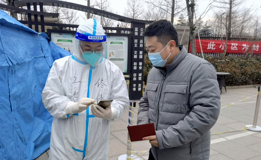 由于海州區新東街道同科匯豐國際小區防疫情況比較嚴峻,集團公司從各下屬公司抽調10人組成志愿服務隊進入同科匯豐國際小區開展志愿服務活動。公司安環管理部安全員佟偉在接到通知后,于3月16日進入該小區參與志愿服務工作。通過社區分配,他的主要任務是為核酸檢測居民錄入信息。每天早晨七點半,佟偉穿戴好全套防護服后立即開始工作,直到沒人來檢測了才能脫掉防護服休息,平均一天要站立工作五、六個小時,需錄入五六百人的信息。操作錄入系統從生疏到熟練,參與志愿服務以來共錄入信息5600余人。除了信息采集外,佟偉還積極參與防疫指揮部臨時分配的各項任務,入戶排查、上門送菜、秩序維護等等。他說,疫情防控事關居民生命安全,作為黨員,這時候更要挺身而出,不遺余力為疫情防控貢獻自己的力量。