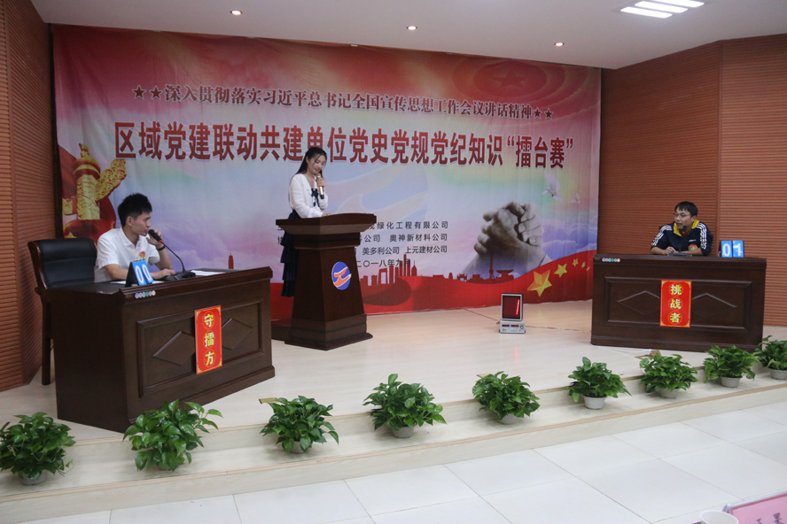春華秋實,枝繁葉茂。在這美好的金秋時節,集團公司大浦片區區域黨建聯動共建單位黨史黨規黨紀知識“擂臺賽”于9月30日下午在華茂綠化工程公司順利進行,來自華茂、神特新材料、奧神新材料、海洲灣、美多利、上元建材等6家單位22名選手參加比賽。經過近2個小時、23輪的激烈角逐,華茂公司的14號選手楊方沖出重圍,奪得冠軍。