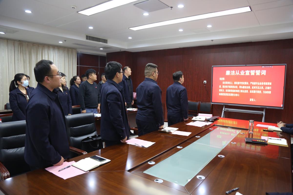 會(huì)上,90后年輕管理人員參加廉潔從業(yè)宣誓并遞交了個(gè)人廉潔承諾書(shū)。