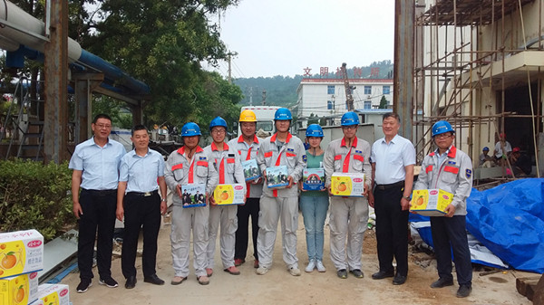 7月28日上午,公司黨委書記吳再忠、經理孫政權、工會主席王志軍一行深入氨綸施工現場走訪慰問一線職工,送去深切的關懷和慰問,把防暑慰問品送到大家手中。在氨綸施工現場,孫經理同現場員工親切交談,叮囑他們在保質保量完成工作任務的同時更要關心職工的身心健康。