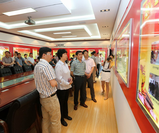 6月9日,市委新社工委召開(kāi)黨建工作觀摩匯報(bào)會(huì),市委組織部副部長(zhǎng)、市委黨建辦主任陳軍帶領(lǐng)觀摩團(tuán),在集團(tuán)公司領(lǐng)導(dǎo)鄭宜虎的陪同下,到我公司黨建活動(dòng)室觀摩。