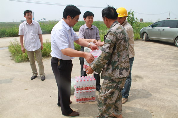 8月15日中午,在公司黨總支副書記、工會主席王志軍陪同下,園區事業部黨委副書記、紀委書記、工會主席楊思階及相關部門人員一行,冒著烈日走訪慰問了在灌西金開置業小區配電安裝工程一線施工的干部職工,為他們送去飲料、西瓜等消暑降溫慰問品,也送去了這炎炎夏日的一絲清涼。