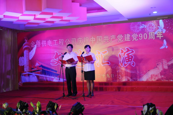 6月29日,公司為慶祝建黨90周年,隆重舉行文藝匯演。集團公司黨委副書記、紀委書記鄭宜虎,工會主席戴鴻鳴,有關部門負責人,以及部分離退休老干部應邀出席。 演出節目既有詩朗誦《七月,為黨歌唱》、大合唱《共架金橋》、女聲獨唱《走進新時代》等,又有公司自創、自編、自導的搖滾快板《金橋供電在崛起》、相聲《誰聰明》、舞蹈《螃蟹調》等。整個演出大氣磅礴,精彩紛呈,掌聲不斷。(司宣)