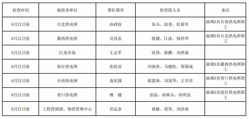2019年安全月安全大檢查日程安排