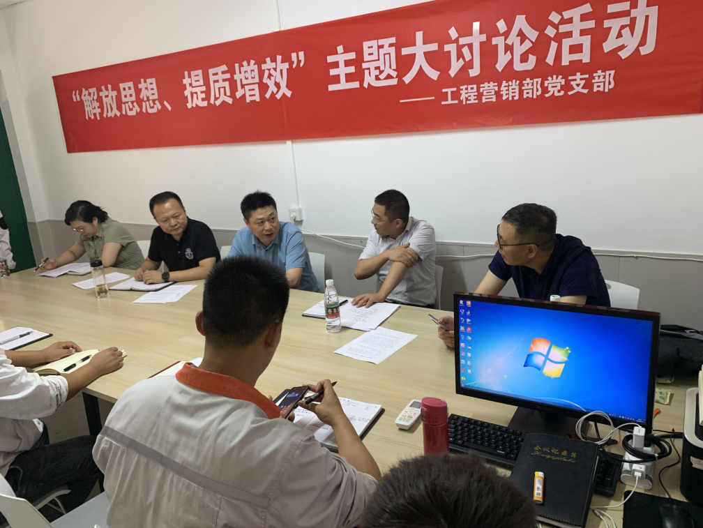 8月11日上午,工程營銷部開展“解放思想、提質增效”主題大討論活動,公司黨委書記、總經理宋晟曄,總經理助理徐健,生產技術部部長張雷海參加討論。會議由工程營銷部副部長賀通華主持。