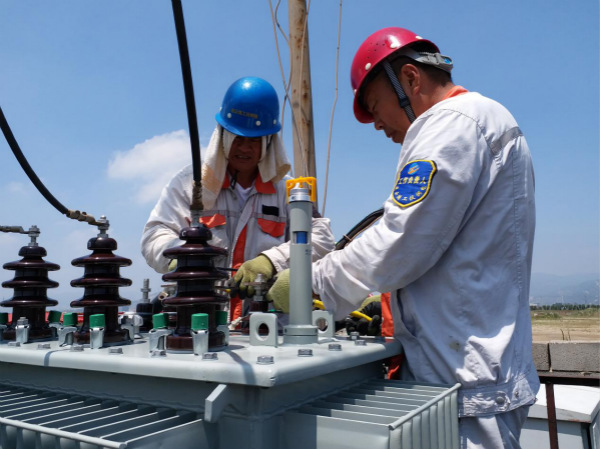 7月19日上午,臺南供電所施工人員對寶旺鋼材城變壓器更換工程項目進行施工。在34度高溫和人員不足的情況下,該所干群齊心協力僅用2個小時完成了1臺315KVA變壓器、配電箱等一系列更換工作,用高效率的施工貫徹落實公司“二屆四次職代會主席團聯席會”會議精神。(臺南供電所)