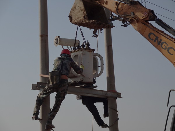 灌西鹽場(chǎng)投資公司800畝漁塘改造成農(nóng)田工程已經(jīng)完工,急需用電打淡水進(jìn)行灌溉。該所為不影響農(nóng)田灌溉,減化用電手續(xù),迅速準(zhǔn)備材料,組織人員以最快的速度立桿,并架設(shè)一臺(tái)80KVA變壓器,整個(gè)施工過(guò)程僅用半天時(shí)間,就安全供電,并優(yōu)先保證供電。(王志勇)
