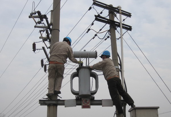 圖為該所職工在黃下線養殖場公變進行檢修 近期,青口供電所在公司抽調精兵強將以決戰利海110KV變電站工程、所里人力十分緊張的情況下,合理進行人力調配,組織職工加班加點,對供電設備全面進行檢修,確保秋冬季節設備安全供電。(宋中文)
